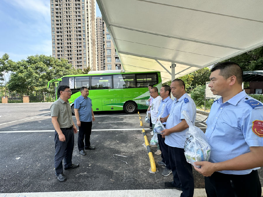 8月7日上午,北碚區(qū)道路運(yùn)輸事務(wù)中心主任張選澤一行到水土思源公租房首末公交站慰問公交一線工作人員。東城公交龍盛經(jīng)營部黨支部書記、經(jīng)理謝再秋陪同。