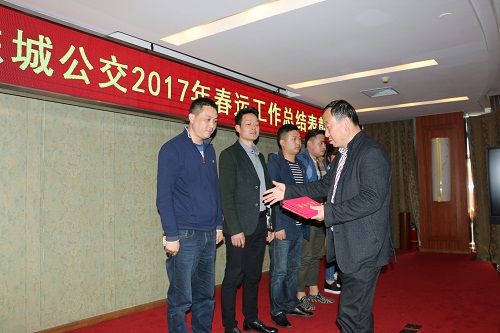 會上,副總經(jīng)理胡忠同志2017年春運工作了全面的總結報告。報告指出,2017年我司春運工作在上級部門的堅強領導下,嚴格按照上級各部門關于春運工作的安排,科學布署,精心組織,強化監(jiān)管,春運40天,共發(fā)班27732趟,完成客運量97萬人次,安全生產(chǎn)形勢總體平穩(wěn),服務質量明顯提升,涌現(xiàn)出一批先進個人,圓滿地完成春運各項任務,得到了上級的肯定和群眾的好評。