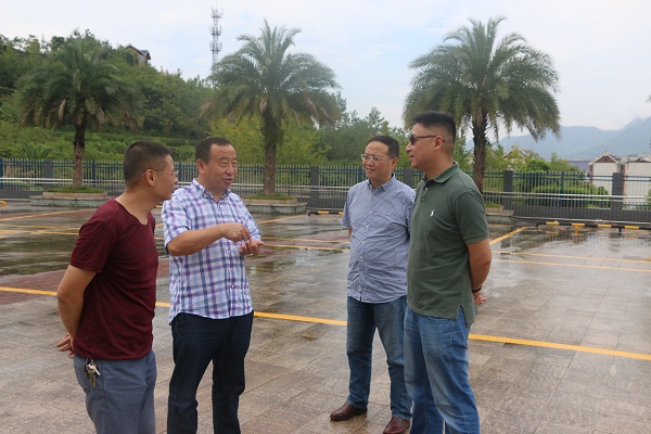 2017年8月29日,北碚區(qū)運(yùn)管處處長(zhǎng)王春、副處長(zhǎng)張勇在東城公交董事長(zhǎng)舒渝、副總經(jīng)理張衛(wèi)的陪同下,到北碚靜觀公交換乘樞紐站建設(shè)工地視察工作。