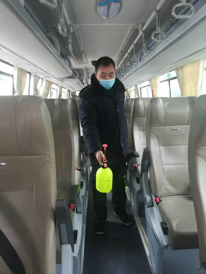 (疫情期間堅(jiān)持每日上車前給乘客測(cè)體溫并對(duì)車輛消毒)